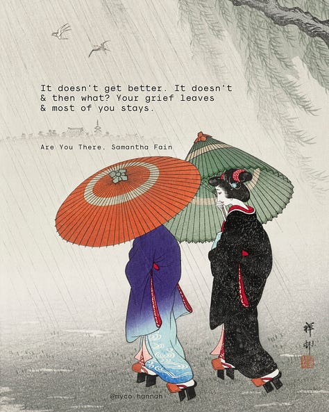 You don’t need to figure it all out right now. All you have to do is be here. The grief is here too, and it doesn’t shrink. It just is. But so are you. So are you. So are you.